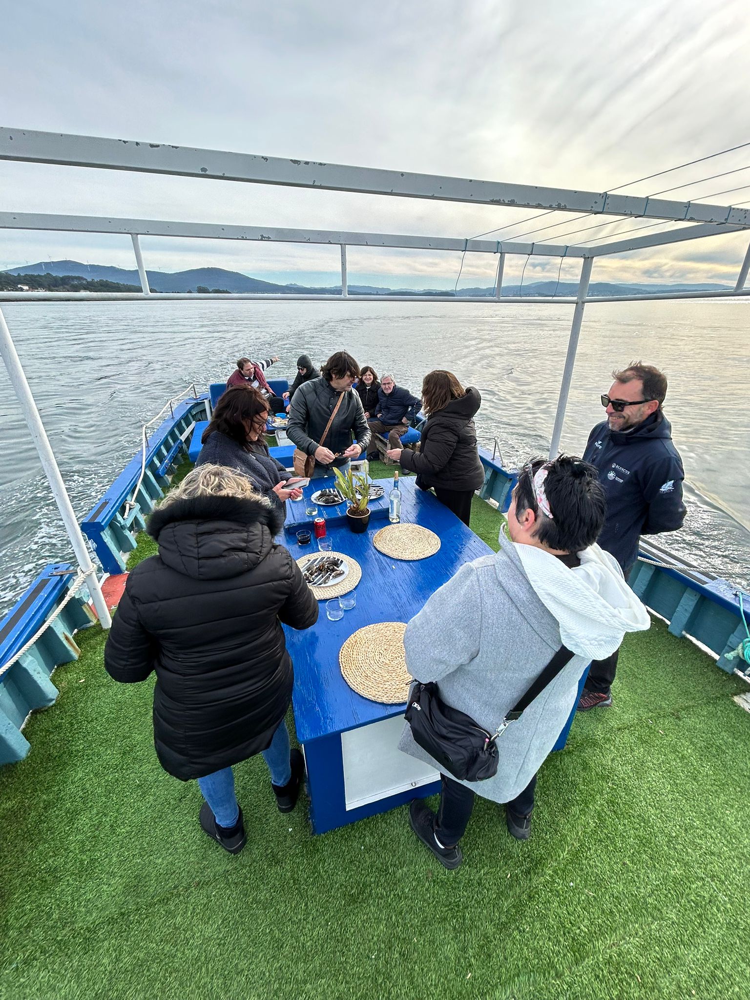 La despedida se lleva a cabo a bordo de un bateeiro gallego tradicional, una embarcación que en su día fue utilizada para la recogida de mejillones en las bateas y que ha sido cuidadosamente restaurada en 2024 para ofrecer un espacio de recogimiento y conexión con el mar.